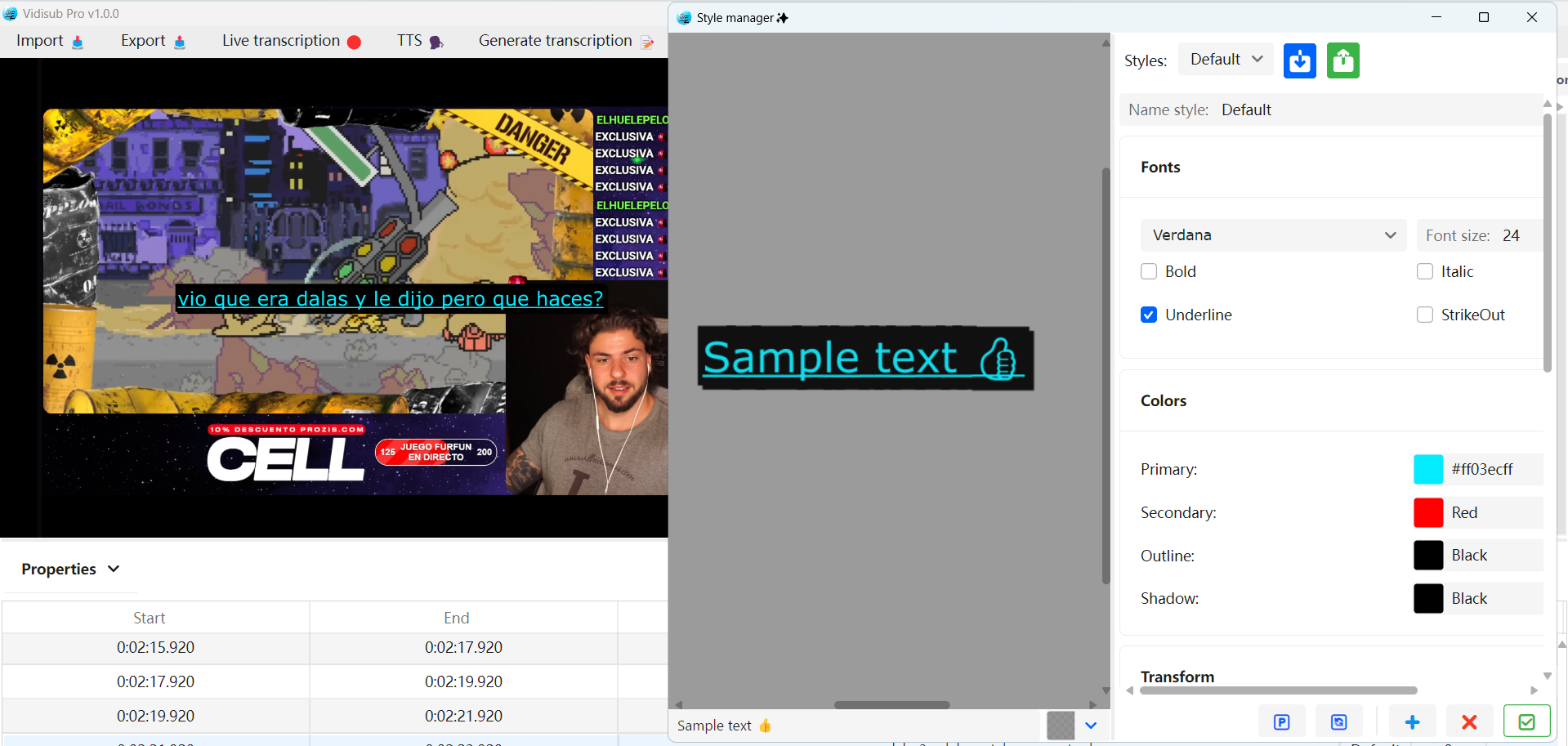 Vidisub allows you to generate transcriptions from audio or video and edit them in real time, primarily based on the ASS subtitle format.